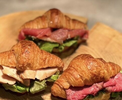 当店自慢のクロワッサンサンド食べ比べセット((ローストビーフ・はちきん地鶏・生ハム))を販売します♪
