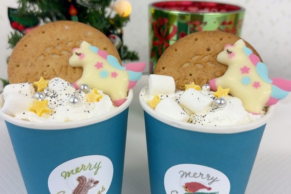 イチオシはビスケット、クリーム、上品な香りの高知県産アールグレイ茶葉などを合わせた「ユニコーンクリスマスティー」。