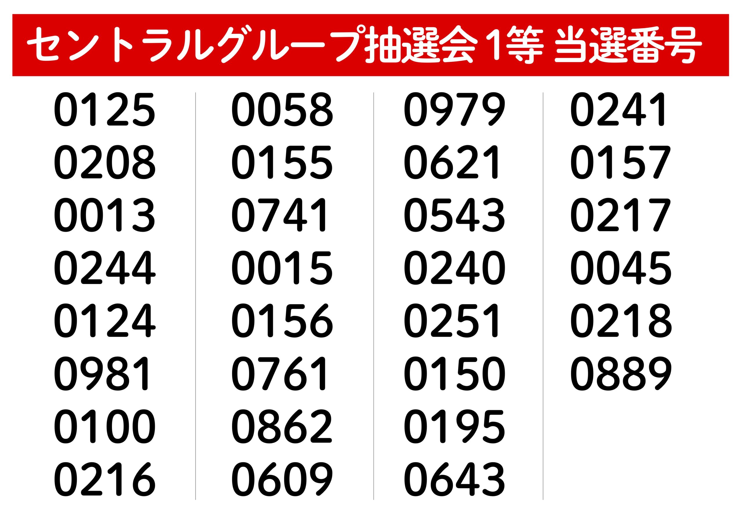 セントラルグループ抽選会 当選番号 2025.12.18 Topics 12月13日に実施した 姫若子の湯の入浴券等が当たる セントラルグループ抽選会の当選番号です。 おめでとうございます!クリスマスマーケット会場にて 25日㈭まで景品お渡し可能です。 半券をインフォメーションにお持ちください。